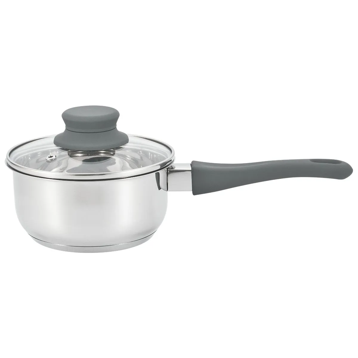 Ковш с крышкой 1,3 л, нержавеющая сталь, прозрачная крышка, длинная ручка, цвет в ассортименте