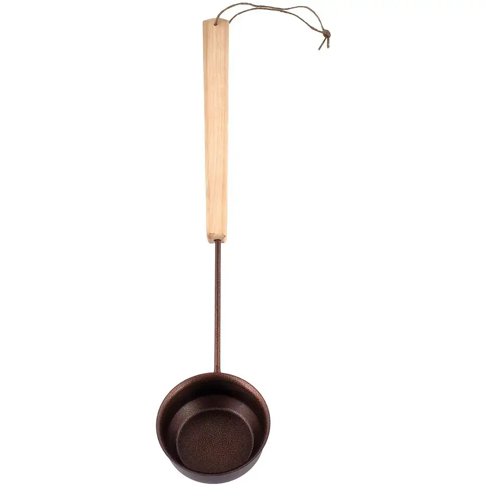 Черная металлическая чаша объемом 0,2 литра устойчива к коррозии и легко моется. Длинная ручка из натуральной липы (51 см) не нагревается и приятна на ощупь. Простой дизайн и надежные материалы гарантируют долгую службу.