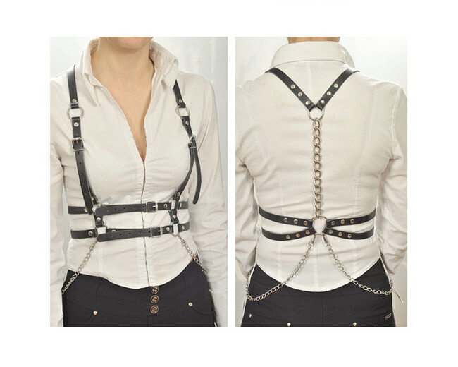 Преимущества данной портупеи заключаются в её универсальности и практичности. Она выполнена из прочного материала, который гарантирует долговечность и надежность. Металлические элементы, такие как пряжки и цепочки, придают изделию дополнительный шарм и стиль. Портупея имеет открытые участки, что делает её идеальной для демонстрации нижнего белья или создания эротического образа.