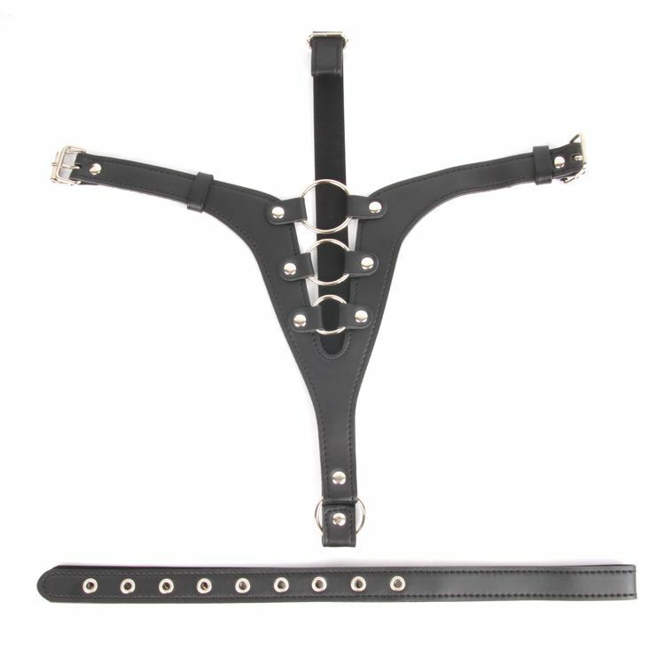 Кожаные черные трусики для страпона