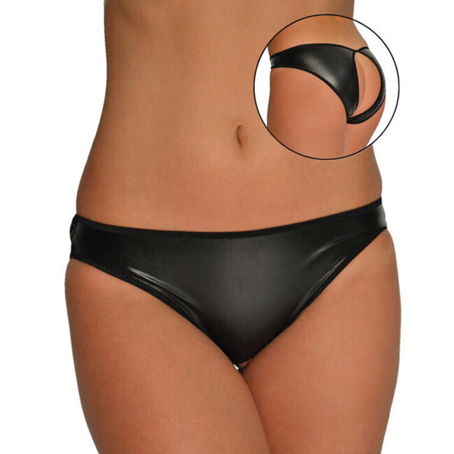 Стринги из искусственной кожи черные, размер 42, с открытой областью ягодиц