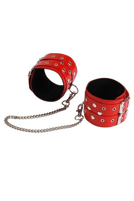 Манжеты кожаные с цепью, красные, универсальный размер, 6,5 см ширина, 35 см цепь
