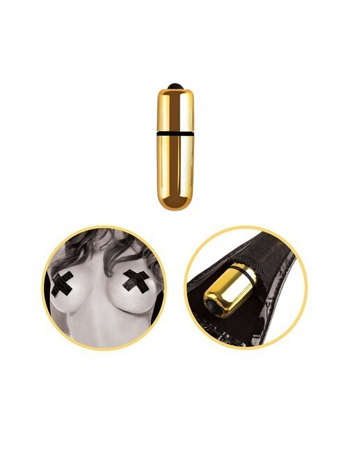 Стринги с вибро-пулей "Fetish Fantasy Gold", черный/золотой, универсальный размер