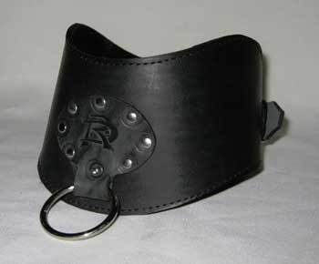 Ошейник выполнен из натуральной кожи с гладкой текстурой и замшевой подкладкой, что обеспечивает комфорт при носке. Кольцо, расположенное в центре, позволяет легко пристегивать поводок или карабины для присоединения наручей и поножей, что делает его идеальным выбором для любителей BDSM и садо-мазо атрибутики.