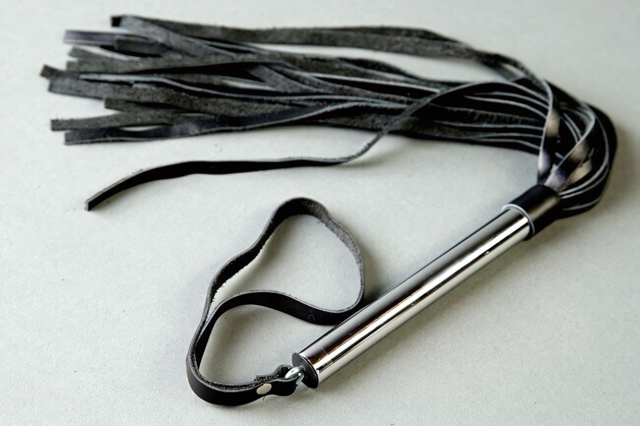 Кожаный мягкий флоггер с узкой металлической ручкой