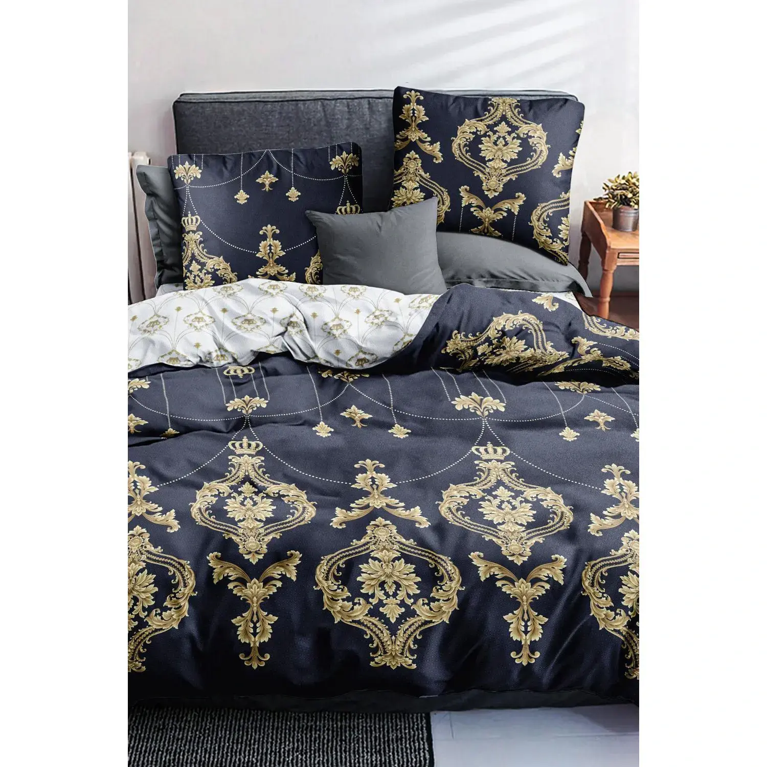 Почему стоит выбрать именно этот комплект? Во-первых, он изготовлен из высококачественного поплина, который отличается прочностью и долговечностью. Во-вторых, его дизайн с золотыми элементами и орнаментами создаёт атмосферу роскоши и уюта. Вы сможете наслаждаться комфортом и красотой каждый день.