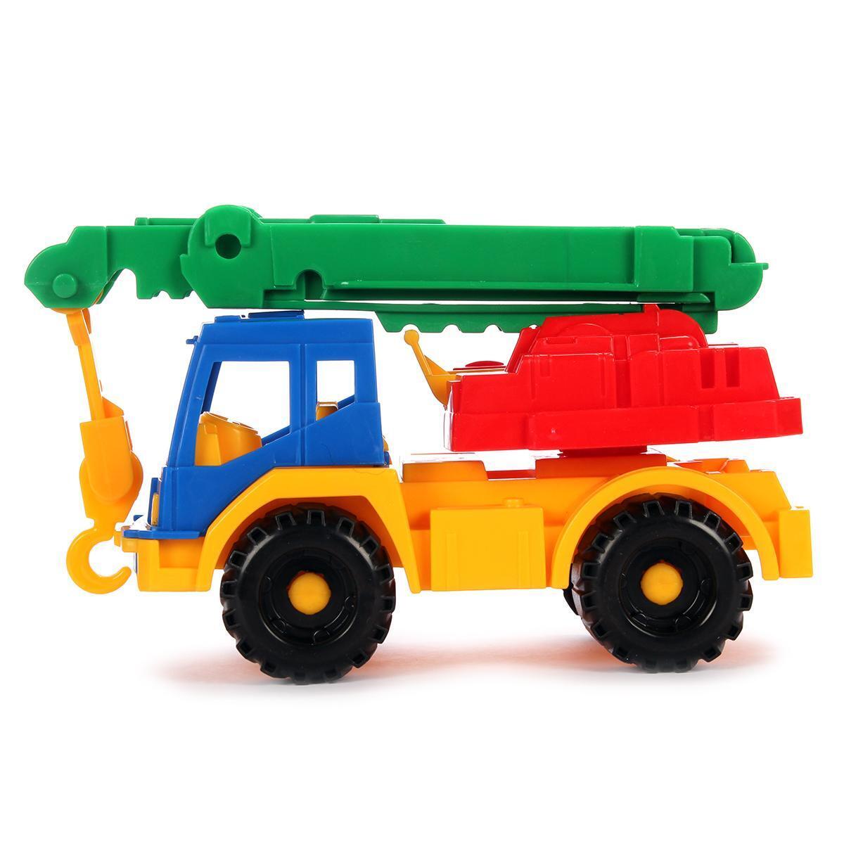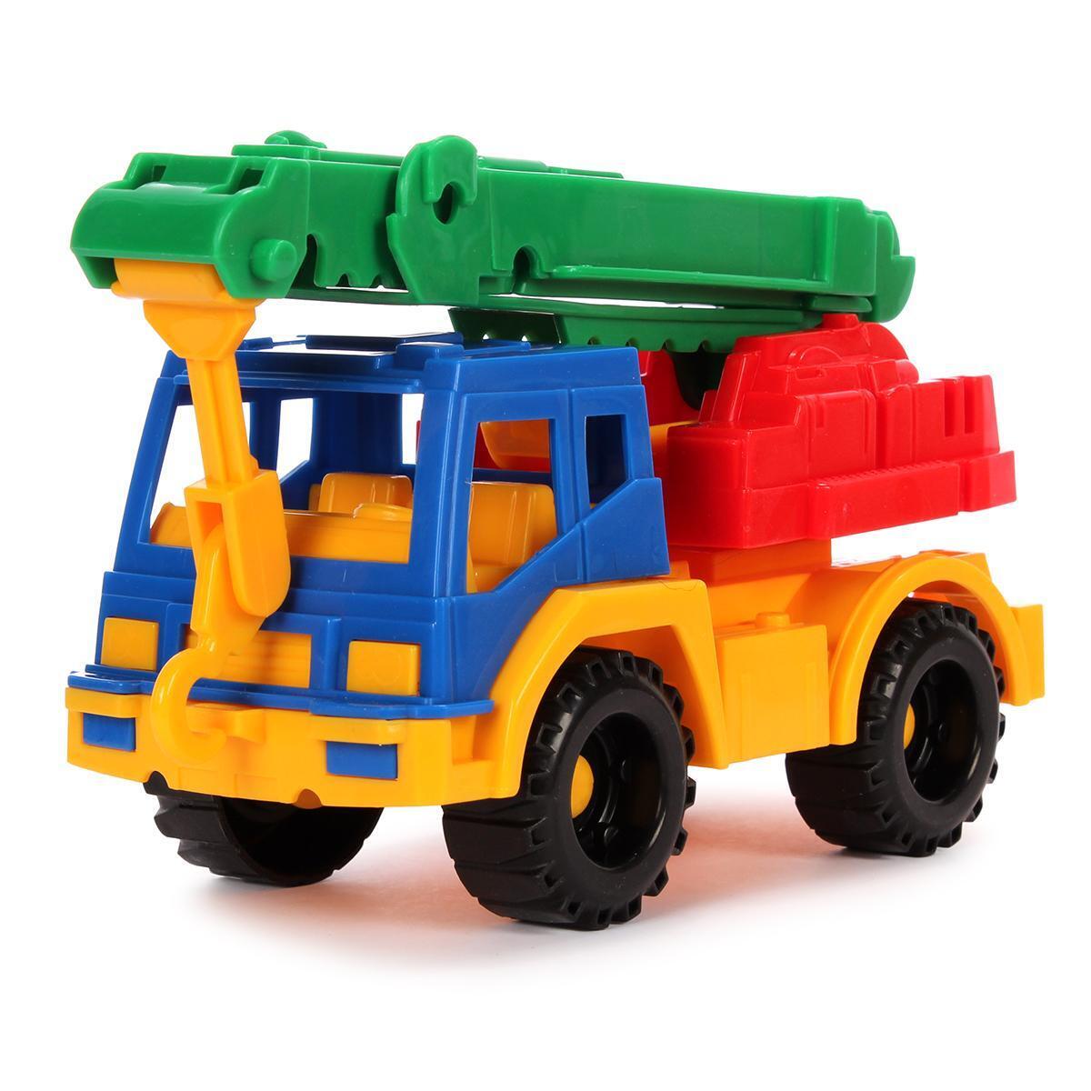 Эта пластиковая игрушка выполнена в ярких цветах и имеет функциональные детали, такие как подъемный кран и движущиеся элементы, что позволяет малышам развивать моторику и воображение. Идеально подходит для детей от 3 лет, способствует развитию моторики, координации и творческого мышления.