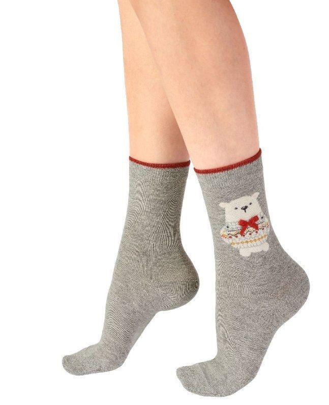 Носки с мишкой 'Полярный медведь', серые, размер S-M-L, хлопок