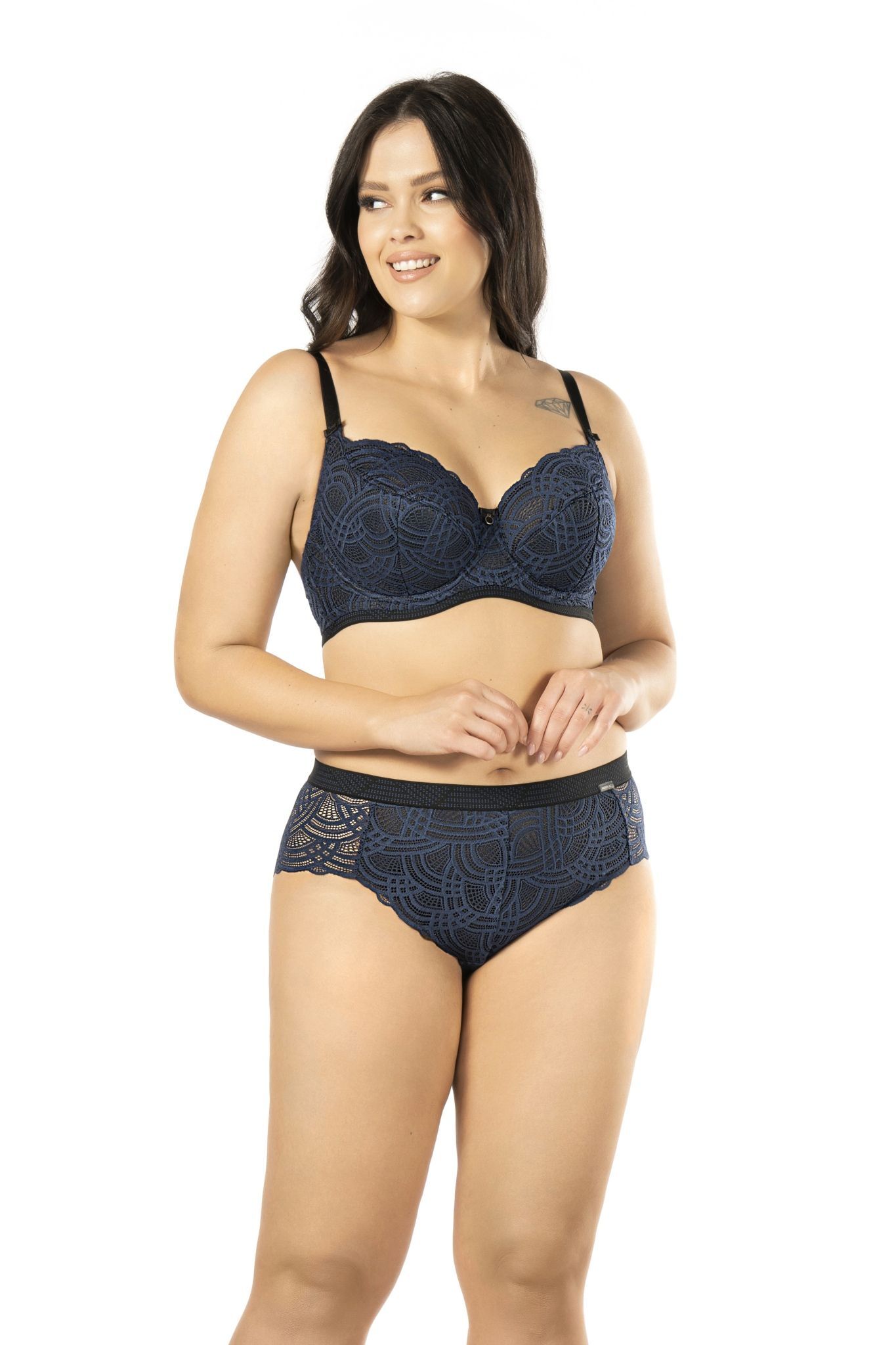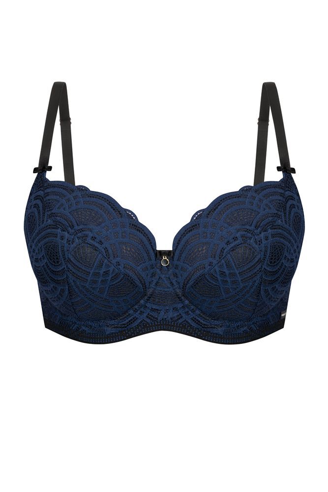 Бюстгальтер с плотной чашкой Debora, размер 90E, темно-синий, кружево, поролон, регулируемые бретели