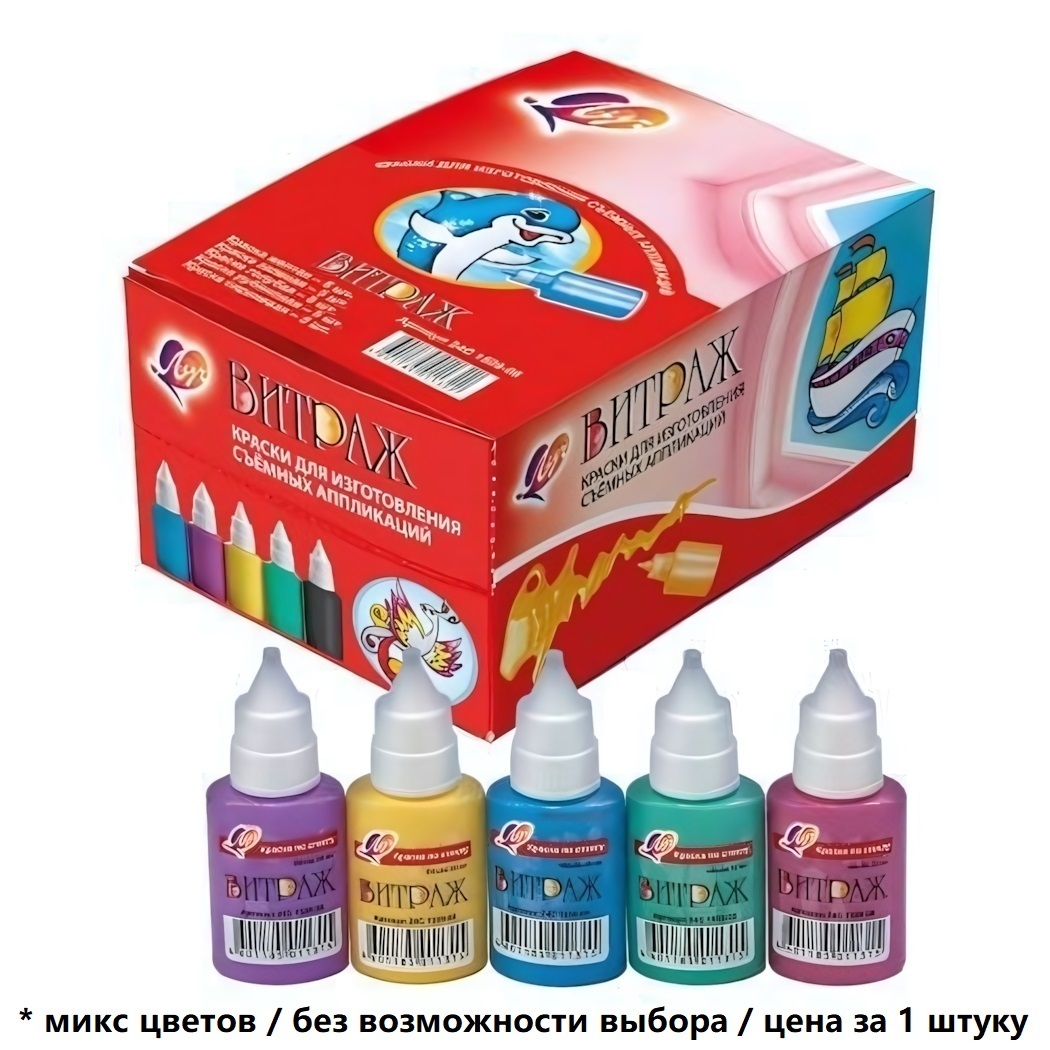 1 флакон витражной краски - 18 мл / без возможности выбора цвета (розовый, желтый, зеленый, синий, фиолетовый).