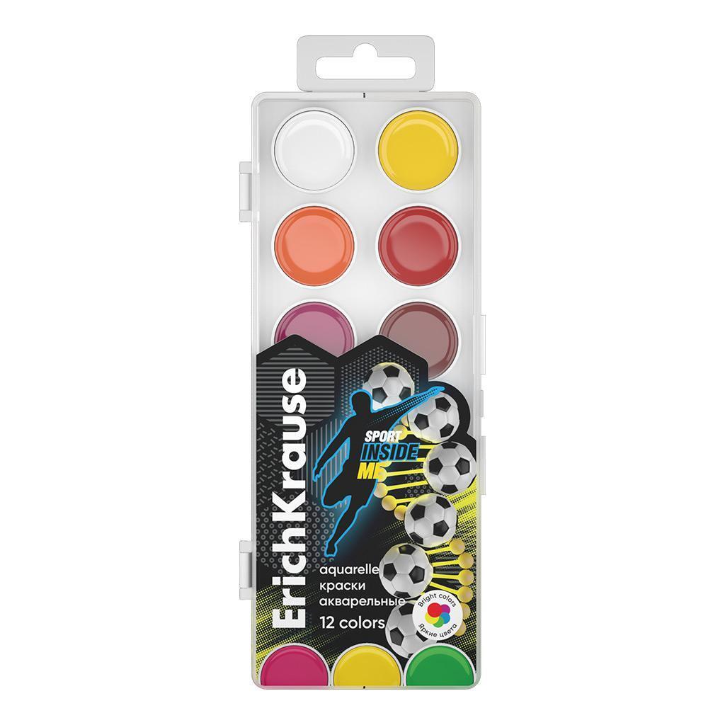 Акварельные краски ErichKrause «Sport DNA», 12 цветов, яркие оттенки, прозрачная палитра с крышкой