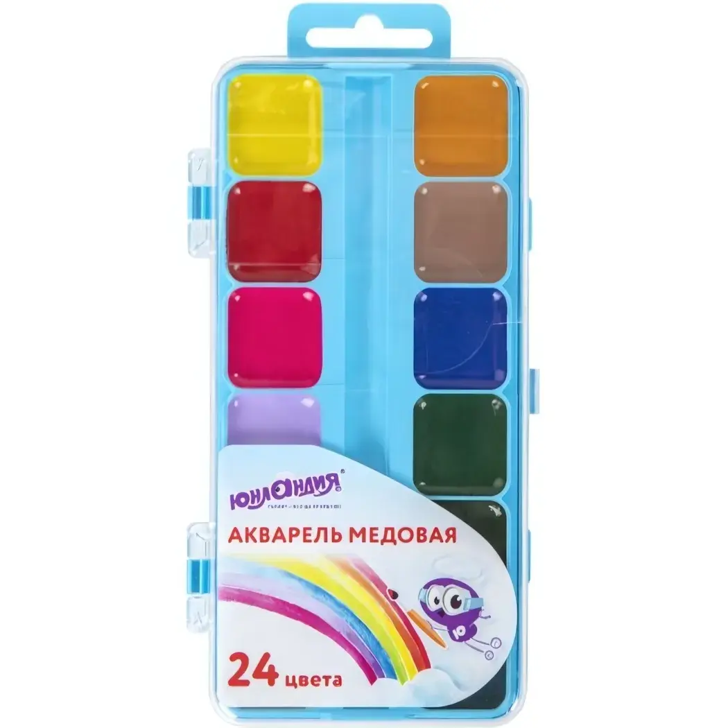 Краски акварельные «Юнландик-художник» 24 цвета, медовые, пластиковая коробка с защелкой