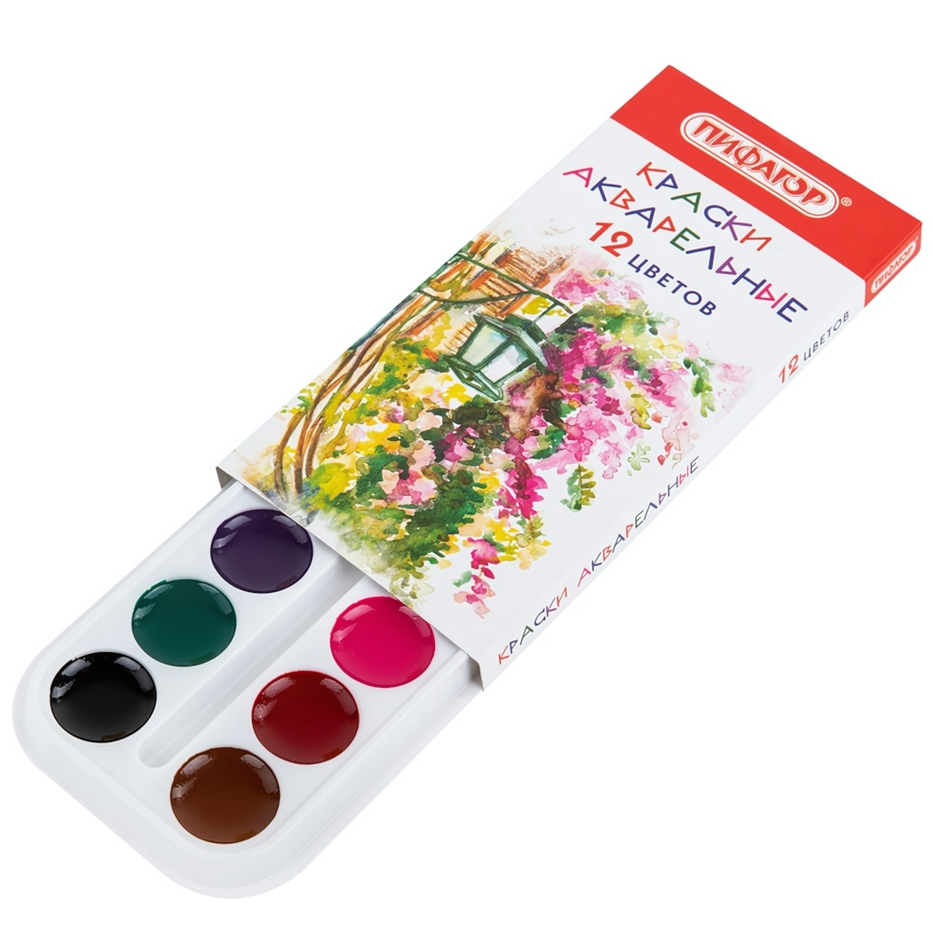 Компактная палитра с круглыми кюветами удобно лежит в руке, а прочная картонная упаковка с корексом защищает краски при переноске. Внутри предусмотрено отделение для кисточки, что делает набор функциональным и мобильным — его легко взять с собой на прогулку, в школу или на пленэр.
