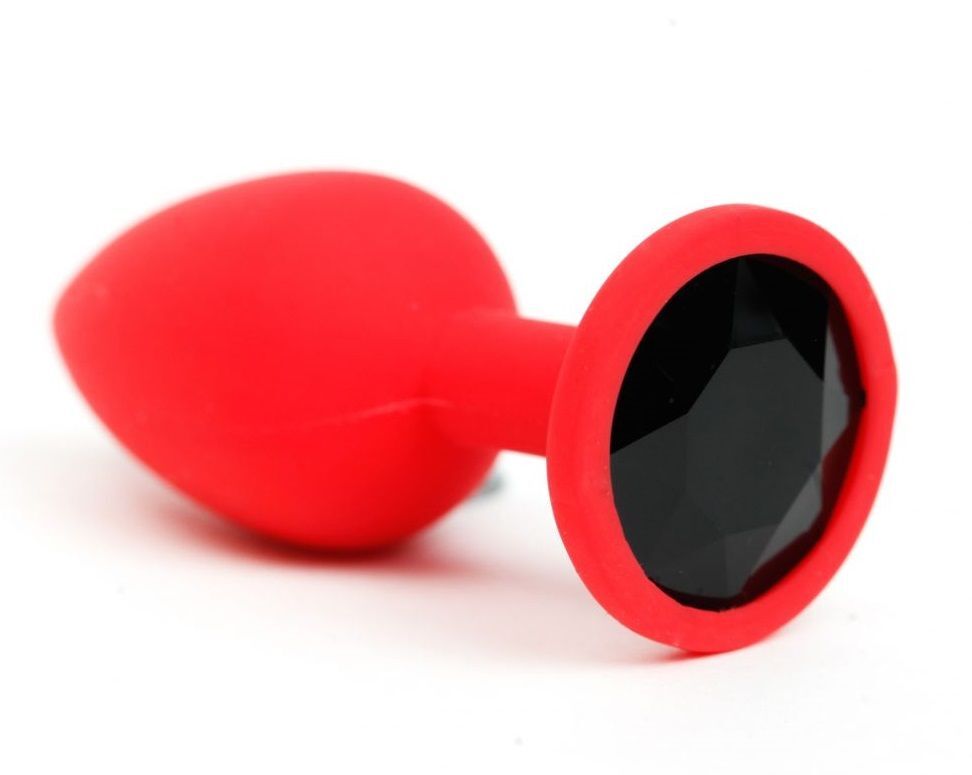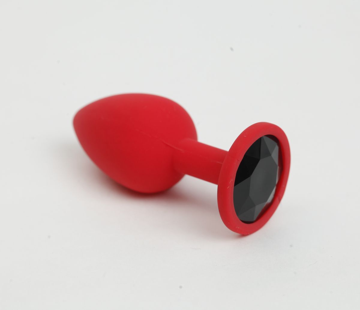 Анальная пробка 4sexdreaM силиконовая, черная, с декором стразом, 7,6 см, диаметр 2,8 см