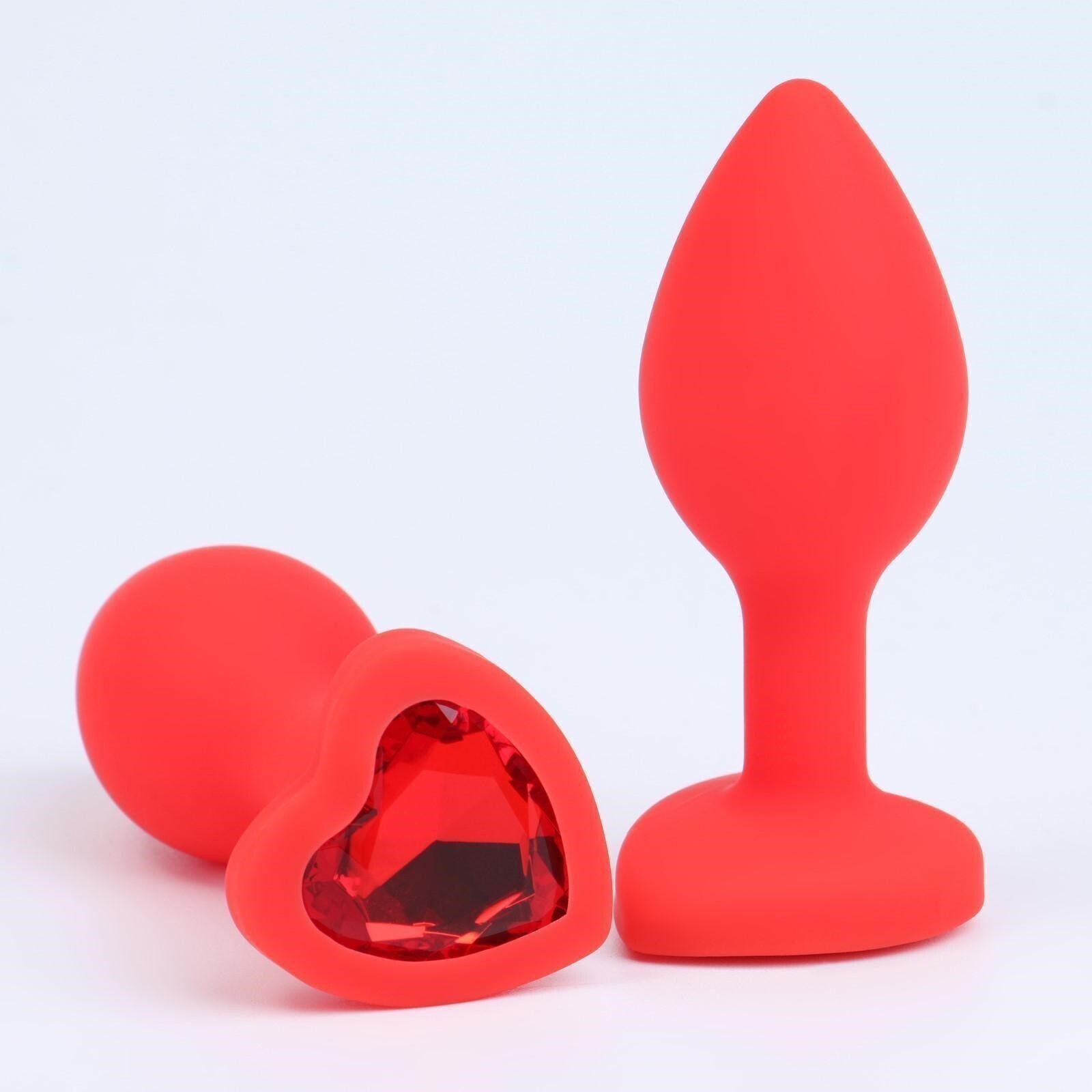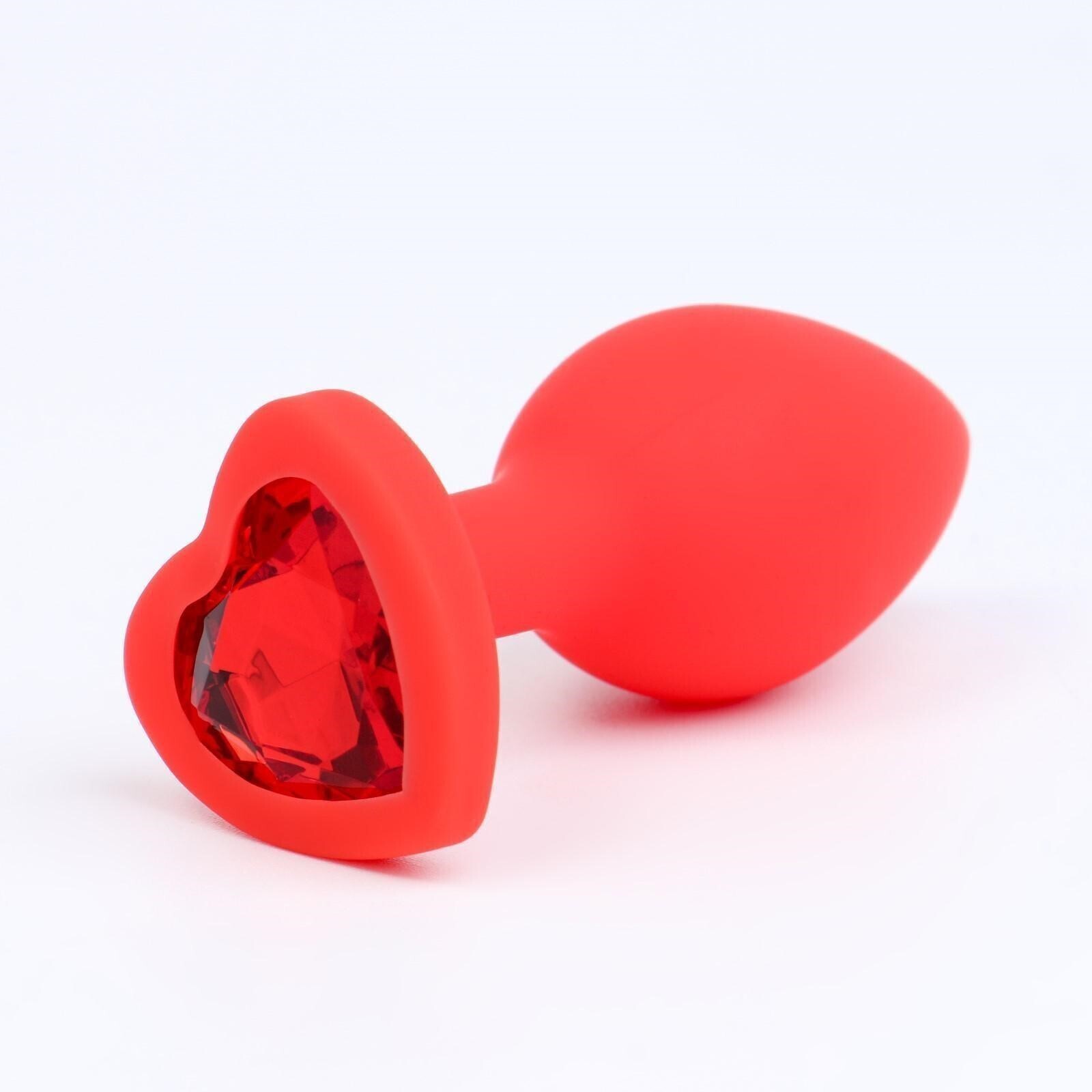 Анальная пробка «Сердечко», силикон, 7,3 см, красный, безопасная анальная стимуляция
