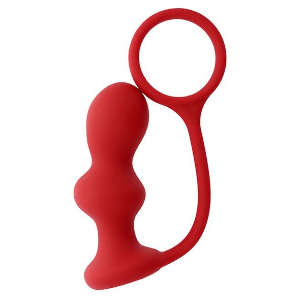 Анальная пробка с кольцом, силикон, красный цвет, длина 10 см, диаметр 3.5 см