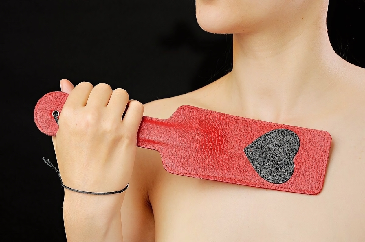 Эта красная хлопалка с сердечком станет незаменимым аксессуаром для любителей BDSM. Изготовленная из натуральной кожи, она сочетает в себе качество и эстетическую привлекательность. Яркий красный цвет с черным узором в виде сердца добавляет игривости и романтики в ваши игры, создавая атмосферу доверия и удовольствия.
