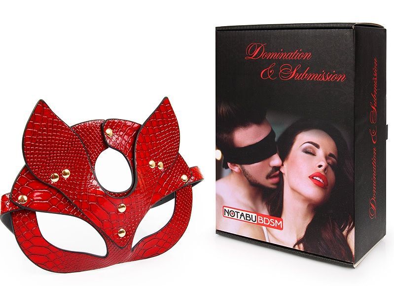 Маска bdsm 'Notabu' красная, pvc, регулируемый размер, стиль кошечки