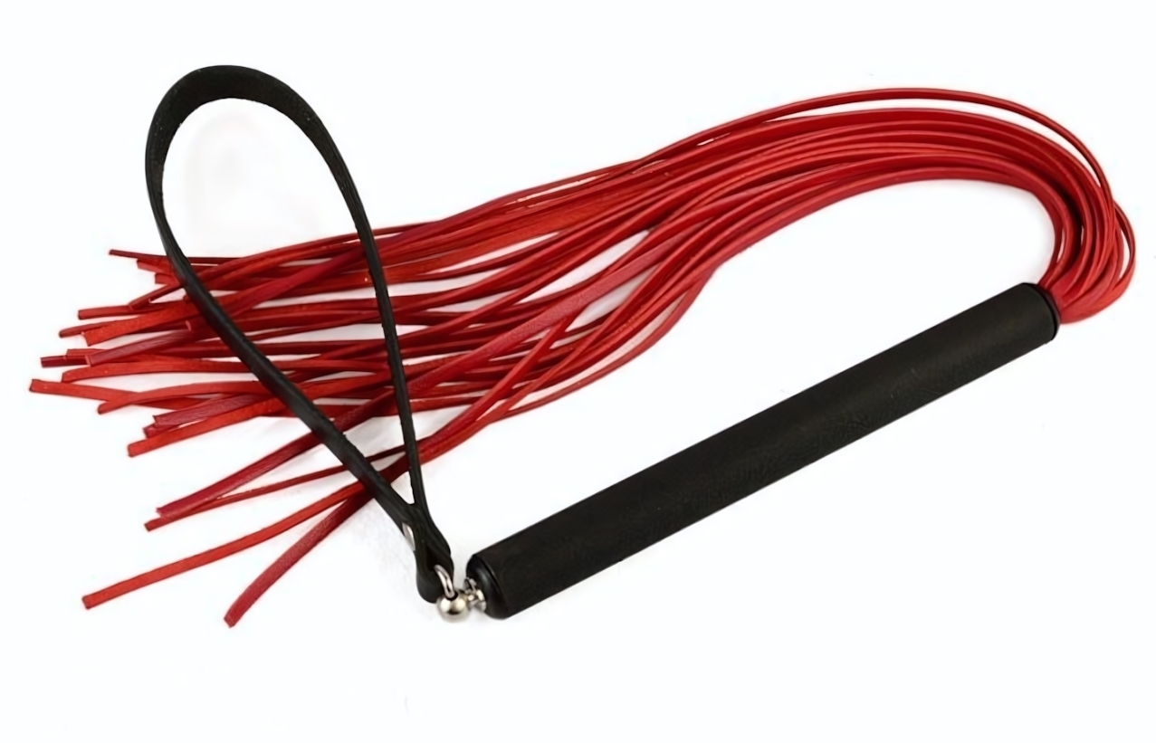 Плеть кожаная 'MIX' 47см, красная с черной рукоятью, натуральная кожа