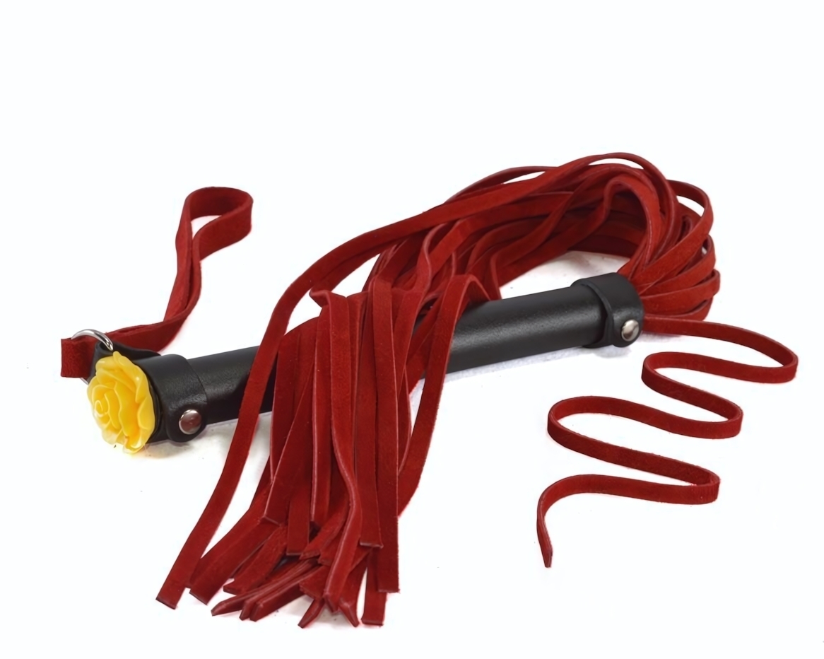 Плеть кожаная с розой, длина 57см, красная, материал натуральная кожа