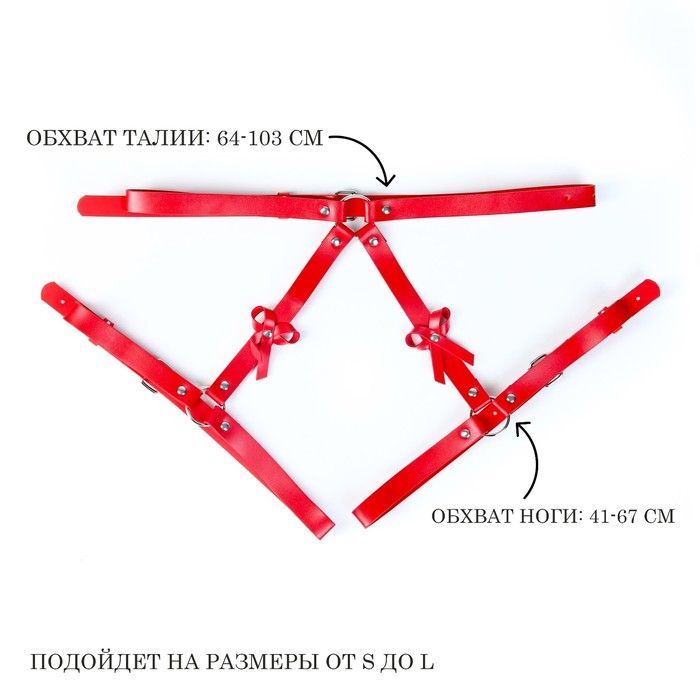 Размер портупеи варьируется от S до L, что делает её подходящей для большинства женщин. Яркий красный цвет и стильные бантики добавляют игривости и шарма. Портупея легко комбинируется с различными нарядами, позволяя вам создавать уникальные образы.