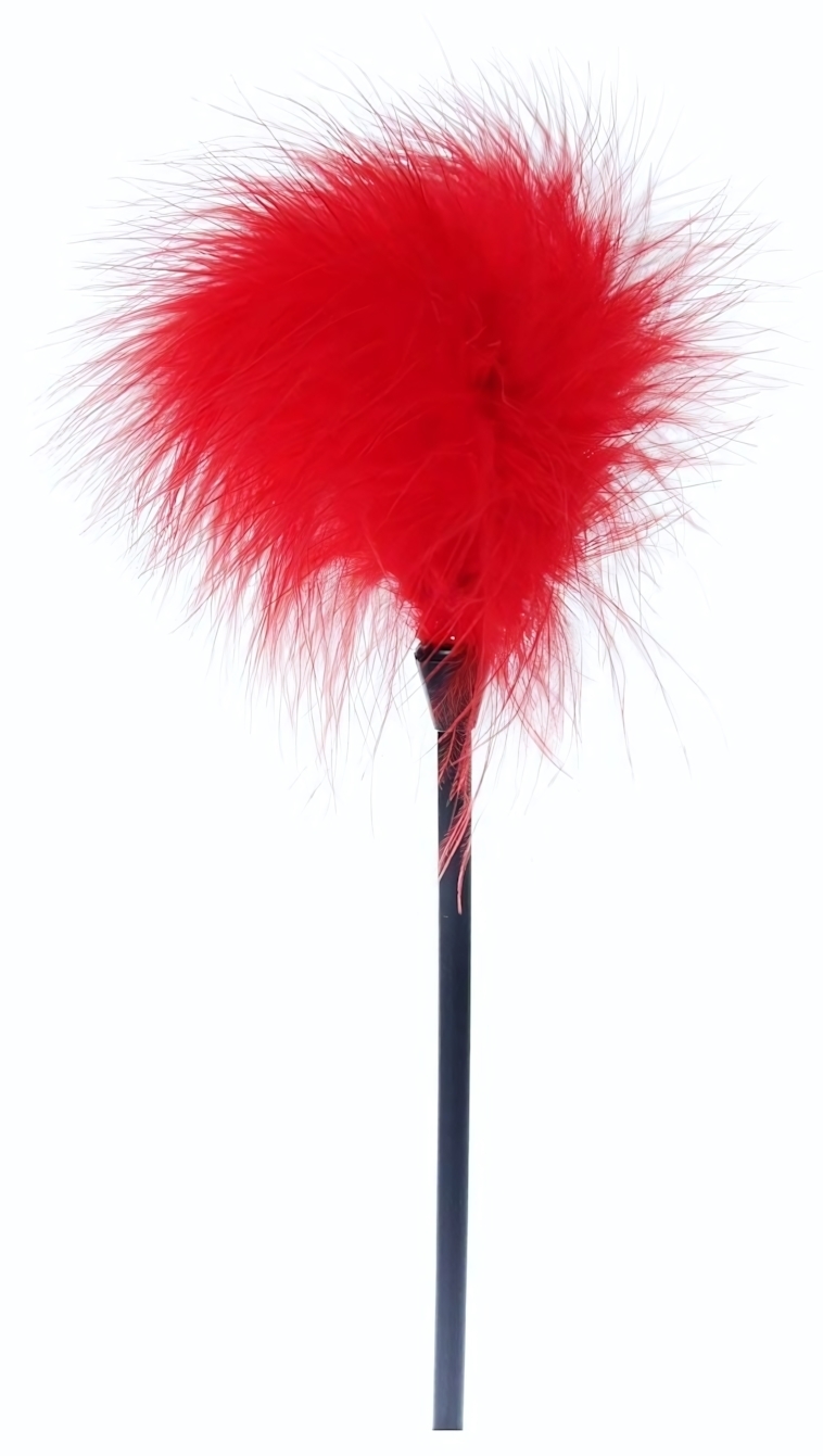 Пуховка имеет стандартную длину 28 см, что делает её удобной для использования. Чёрная палочка, на которой закреплён пух, выполнена из прочного АБС-пластика, что гарантирует долговечность и надежность. Этот аксессуар станет отличным дополнением к вашей коллекции товаров для взрослых и поможет разнообразить ваши интимные моменты.