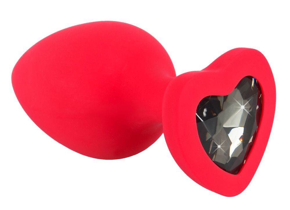 Красная силиконовая анальная пробка с черным стразом