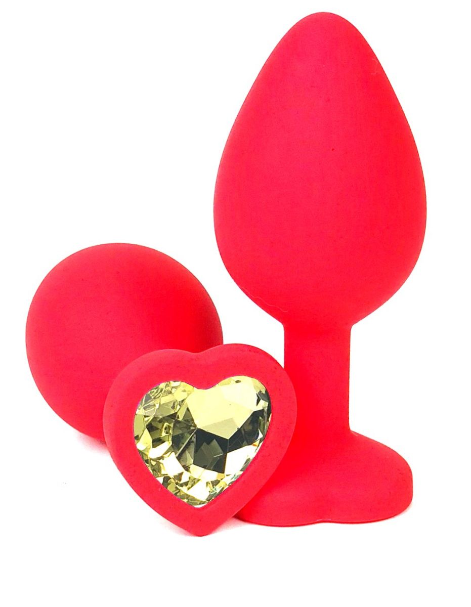 Анальная пробка силиконовая с декоративным стразом-сердцем, красная, 10.5 см, цвет в ассортименте