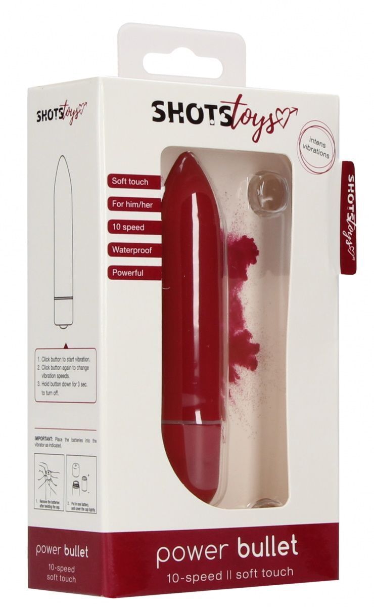 Вибропуля Power Bullet, 10 режимов, красная, 8.3см, водонепроницаемая