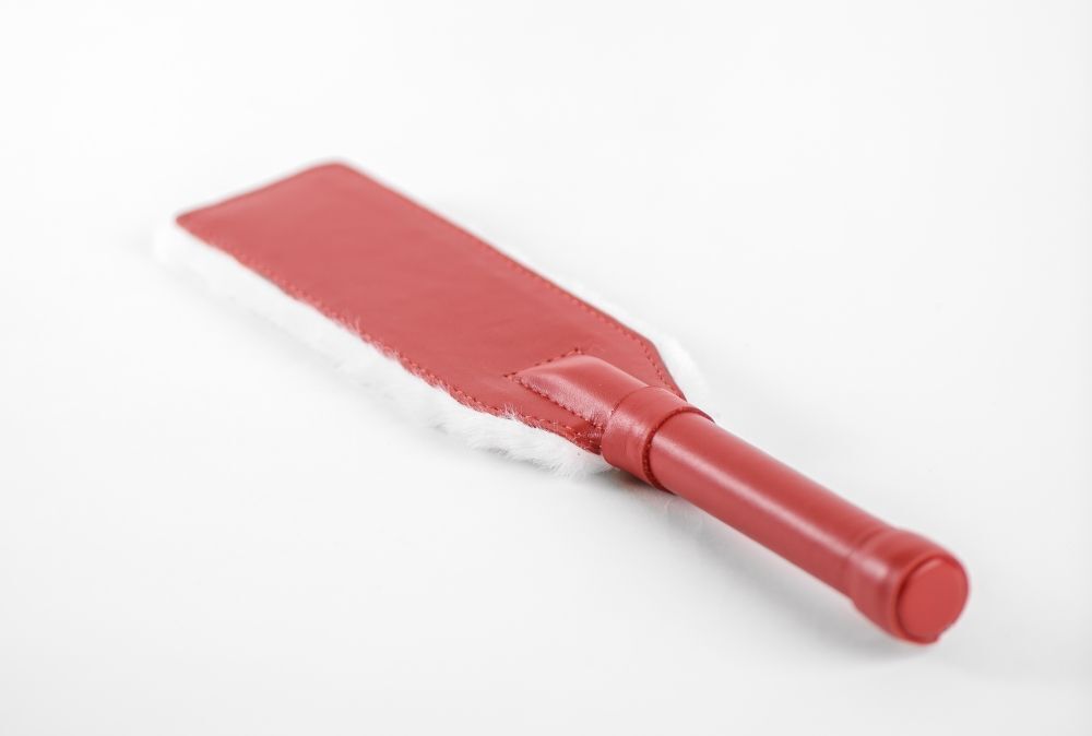 Погрузитесь в мир новых ощущений с красно-белой двусторонней шлепалкой из натуральной кожи и меха. Этот стильный и функциональный девайс станет незаменимым атрибутом для любителей BDSM и садомазохистских игр. С одной стороны шлепалка выполнена из качественной натуральной кожи красного цвета, а с другой — из нежного меха, что обеспечивает разнообразие тактильных ощущений. Ручка, также изготовленная из натуральной кожи, обеспечивает максимальный комфорт в руке, позволяя вам сосредоточиться на удовольствии.