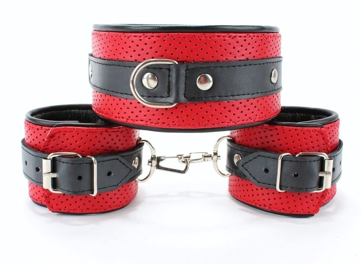 Комплект 'BDSM Арсенал' создан для тех, кто ценит качество и комфорт в интимных играх. Натуральная перфорированная кожа обеспечивает приятные тактильные ощущения и длительный срок службы.