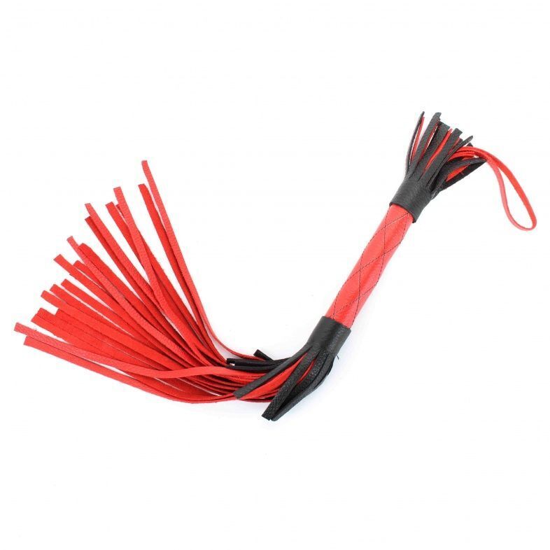 Плеть кожаная «БДСМ Арсенал», рукоятка с петелькой, 45 см, красный с черным