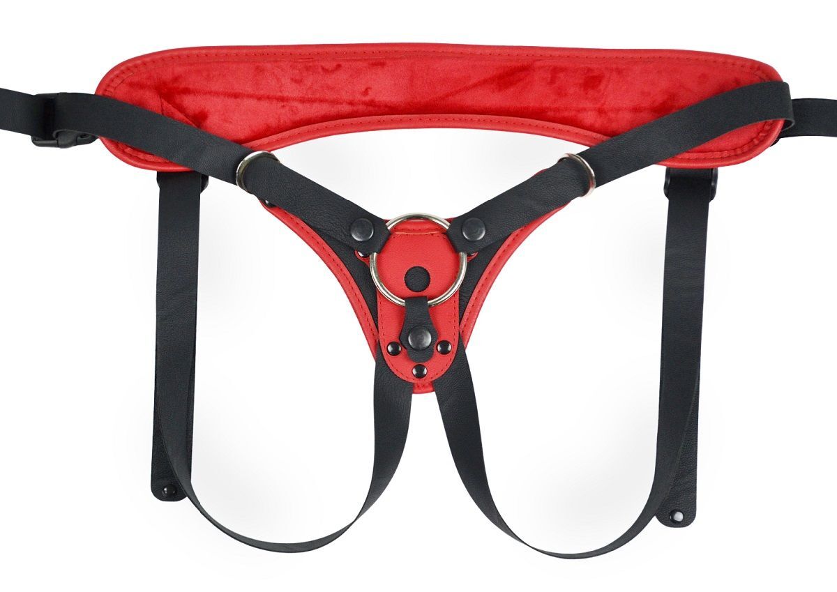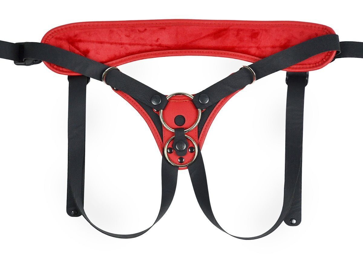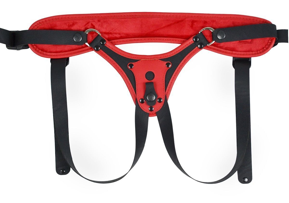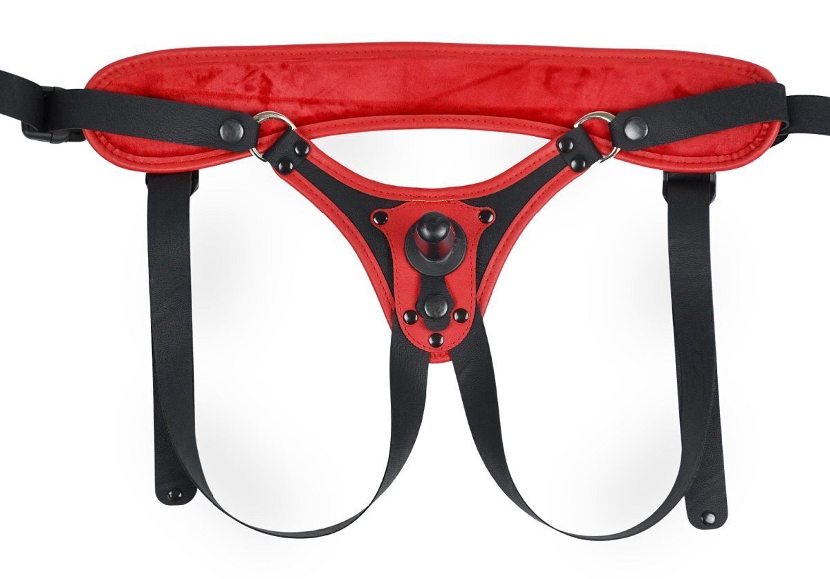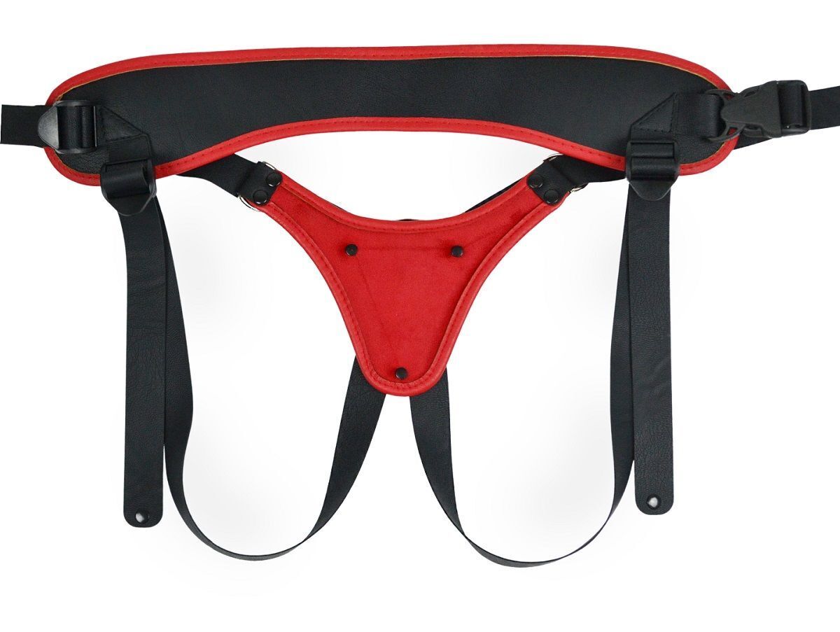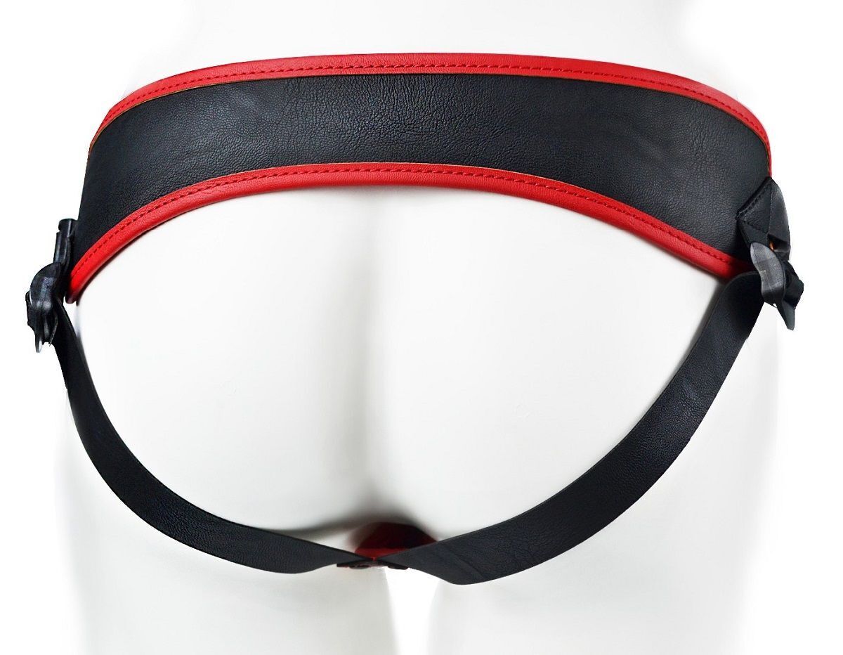 Трусики универсальные LOVETOY, красно-черные, экокожа, с двумя типами креплений