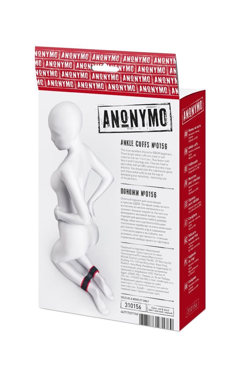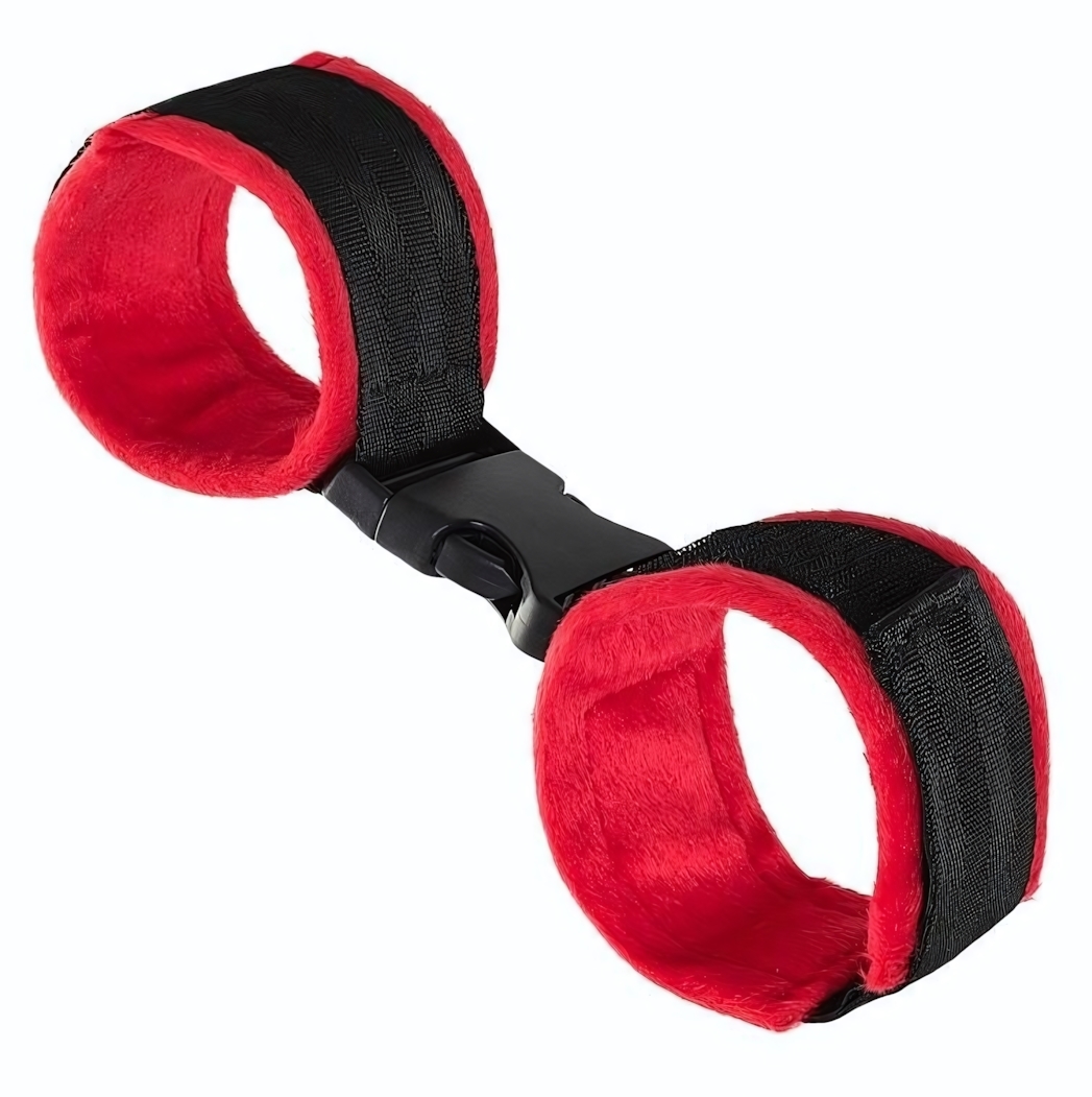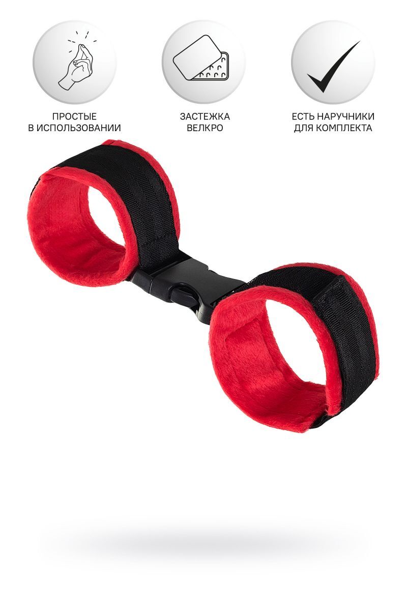 Красно-черные велюровые оковы Anonymo с мягкой фиксацией, длина 29 см, ширина 5.5 см, комфорт и безопасность