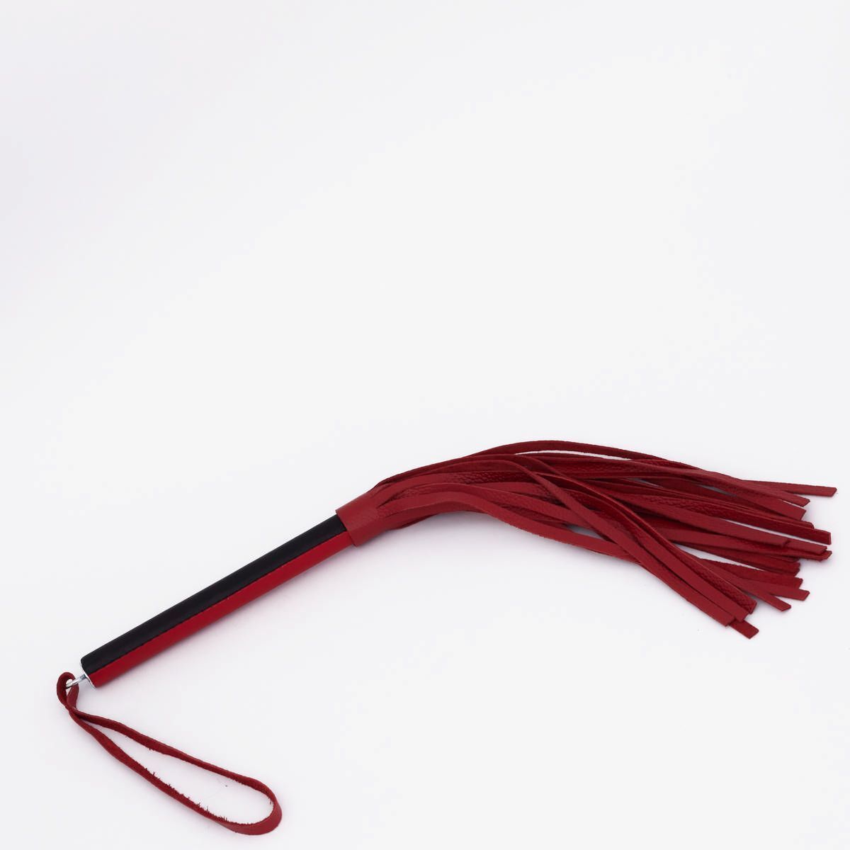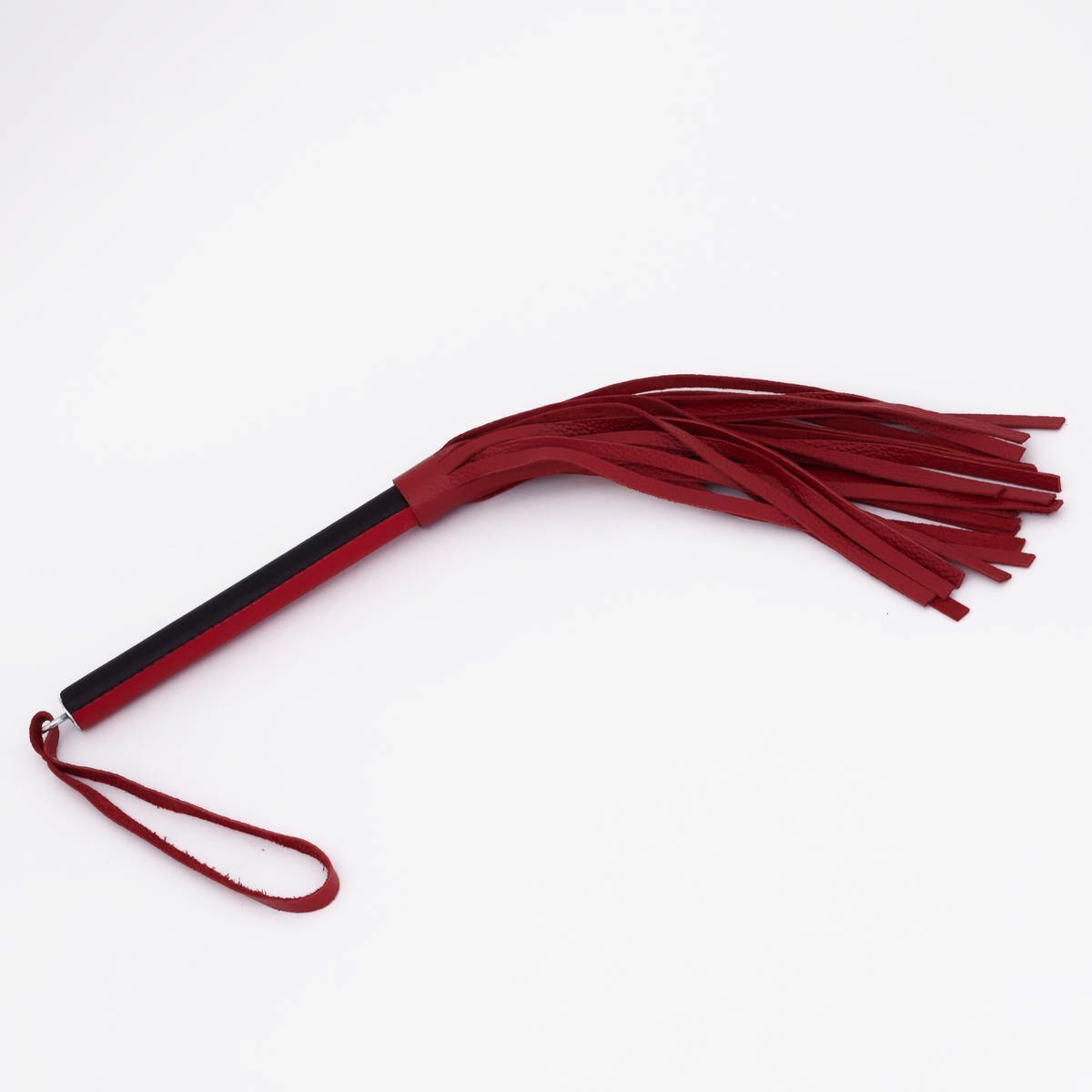 Плеть-флоггер из натуральной кожи, 50 см, красно-черный, эргономичная стальная ручка с петлей