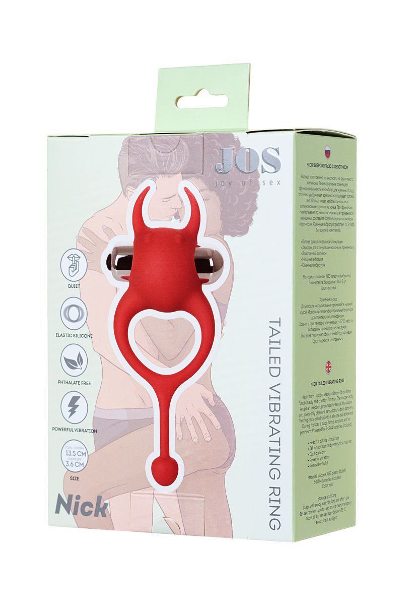 Виброкольцо 'JOS NICK', красное, d3.6см, силикон, с вибрацией