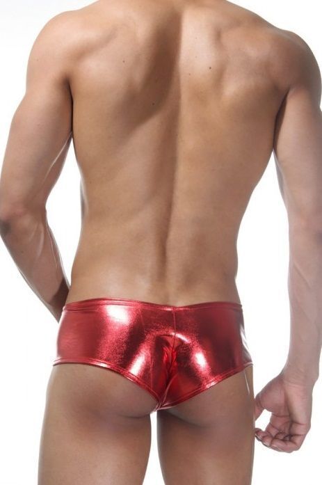 Трусы-хипсы мужские красные, размер L-XL, блестящие с кружевными вставками