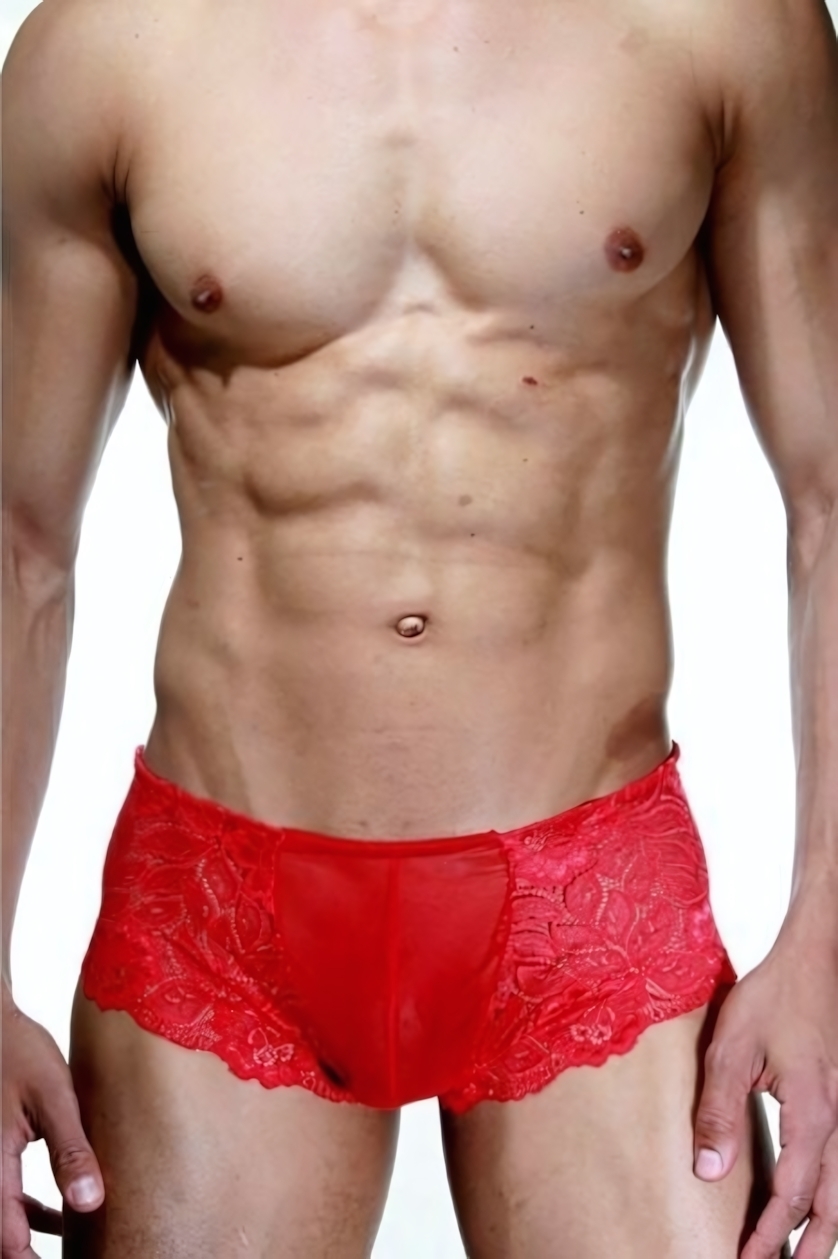 Яркие красно-черные трусики-хипсы с кружевными вставками для мужчин