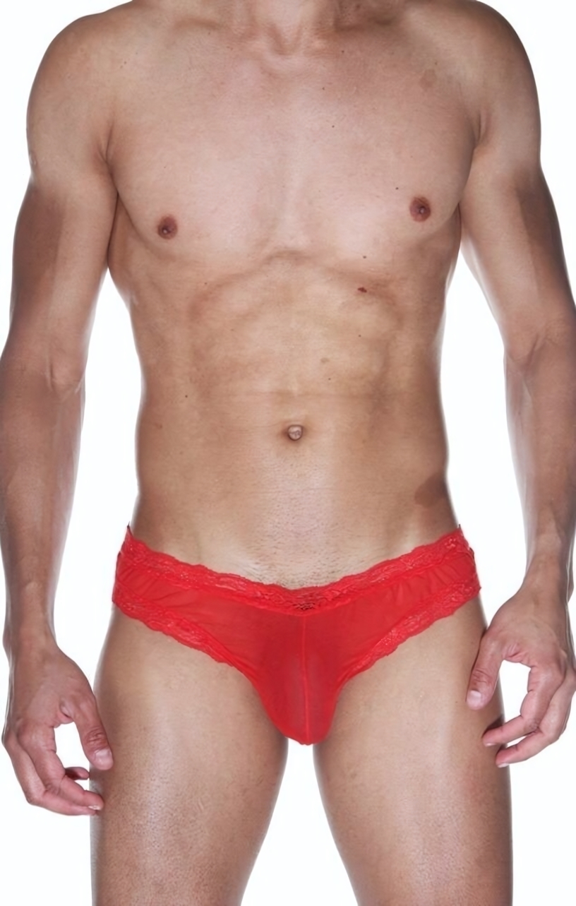 Мужские трусы-бразилиана «La Blinque», кружевная отделка, полупрозрачные, размер L-XL, красный