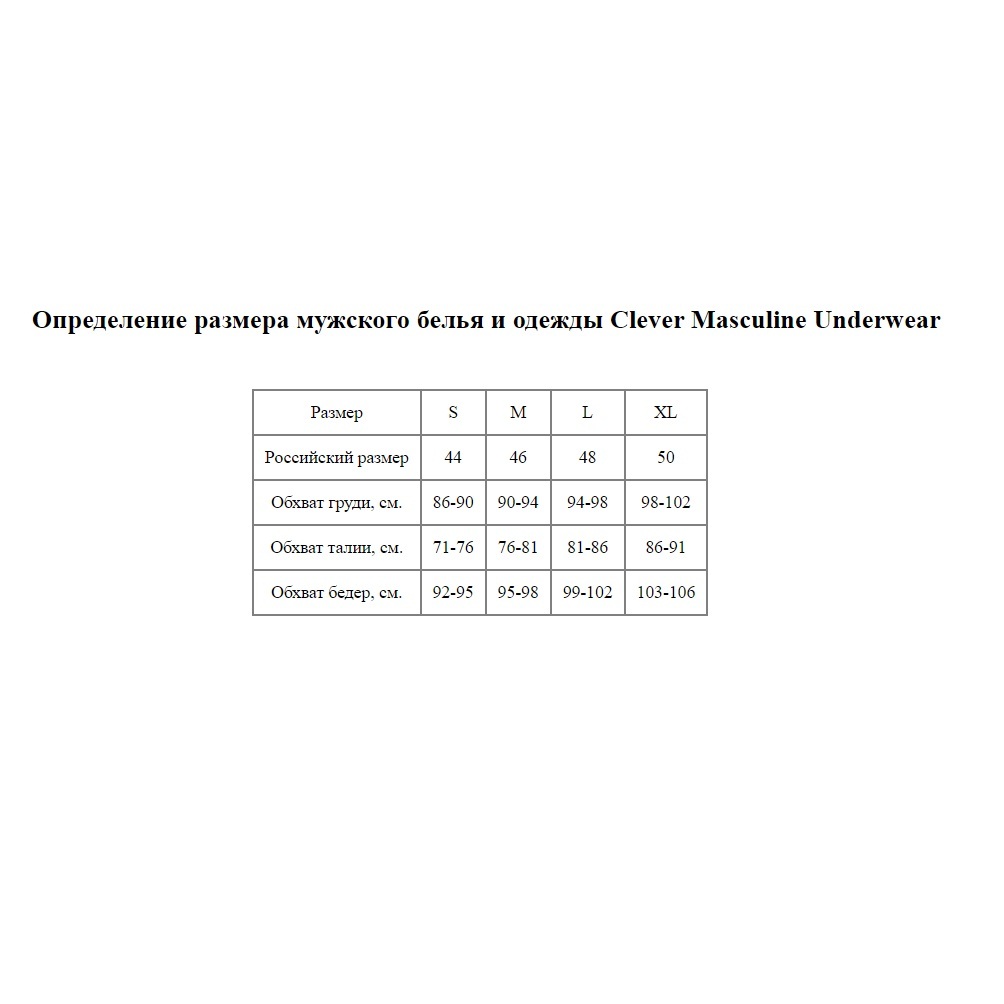 Размер L идеально подходит для мужчин с обхватом талии 81-86 см. Трусы имеют широкий пояс с надписью 'CLEVER', что добавляет им стильный акцент. Не упустите возможность обновить свой гардероб с помощью этих уникальных трусов-стрингов, которые станут отличным дополнением к вашему нижнему белью.