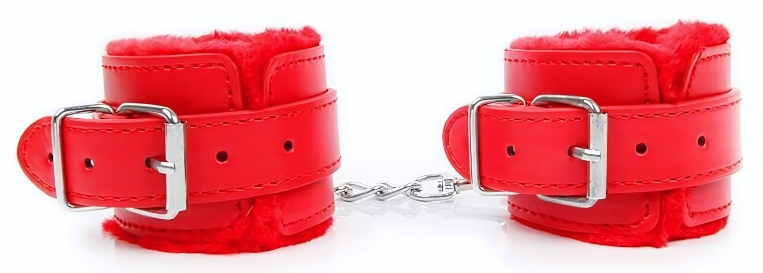Наручники регулируемые с мягкой подкладкой, ПВХ, красный цвет, цепочка в комплекте