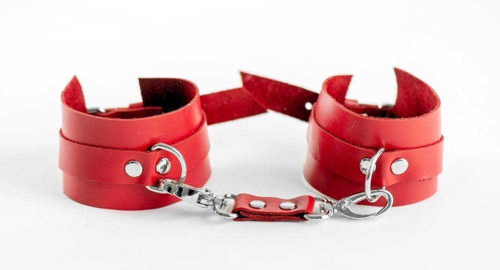 Наручники кожаные красные, регулируемые 15-24см, натуральная кожа