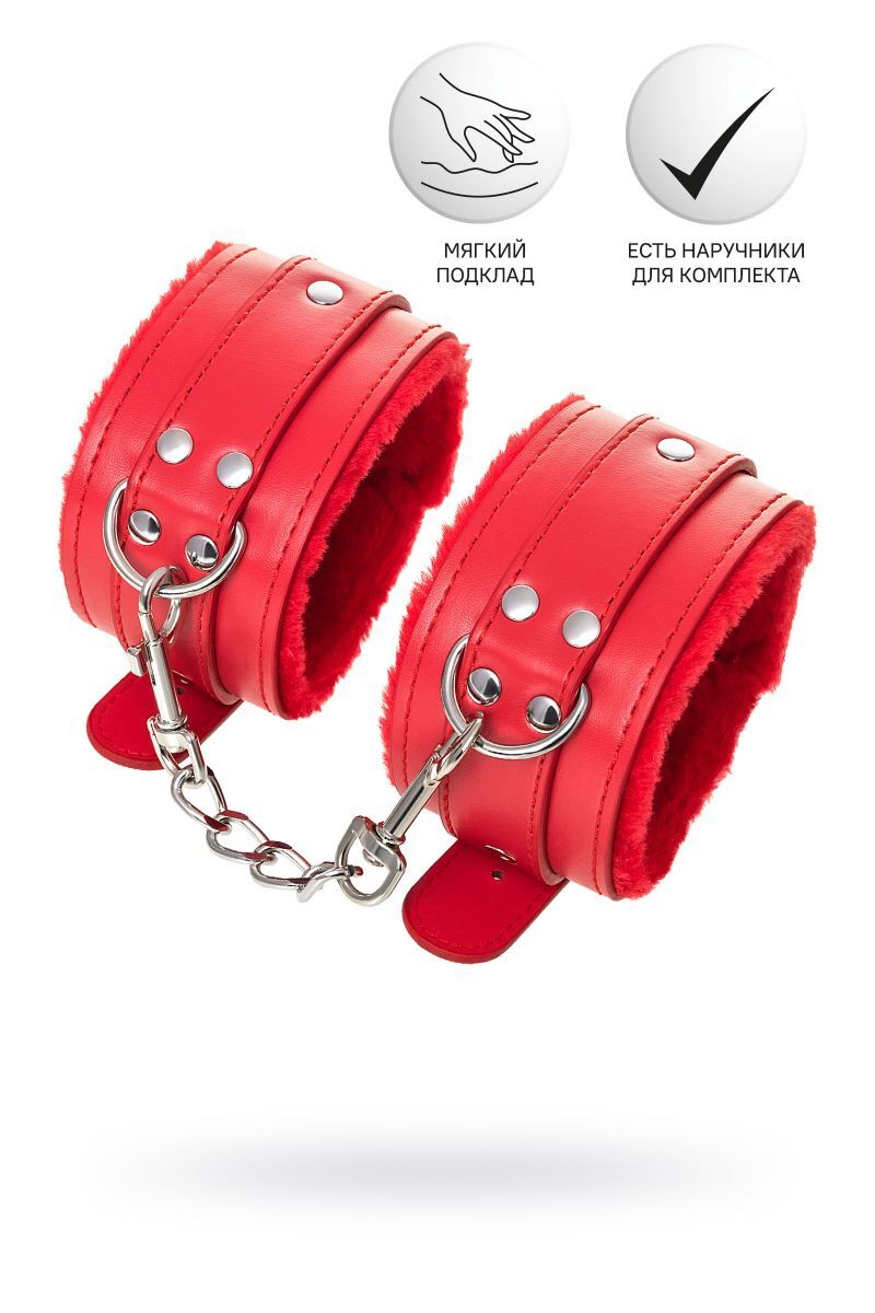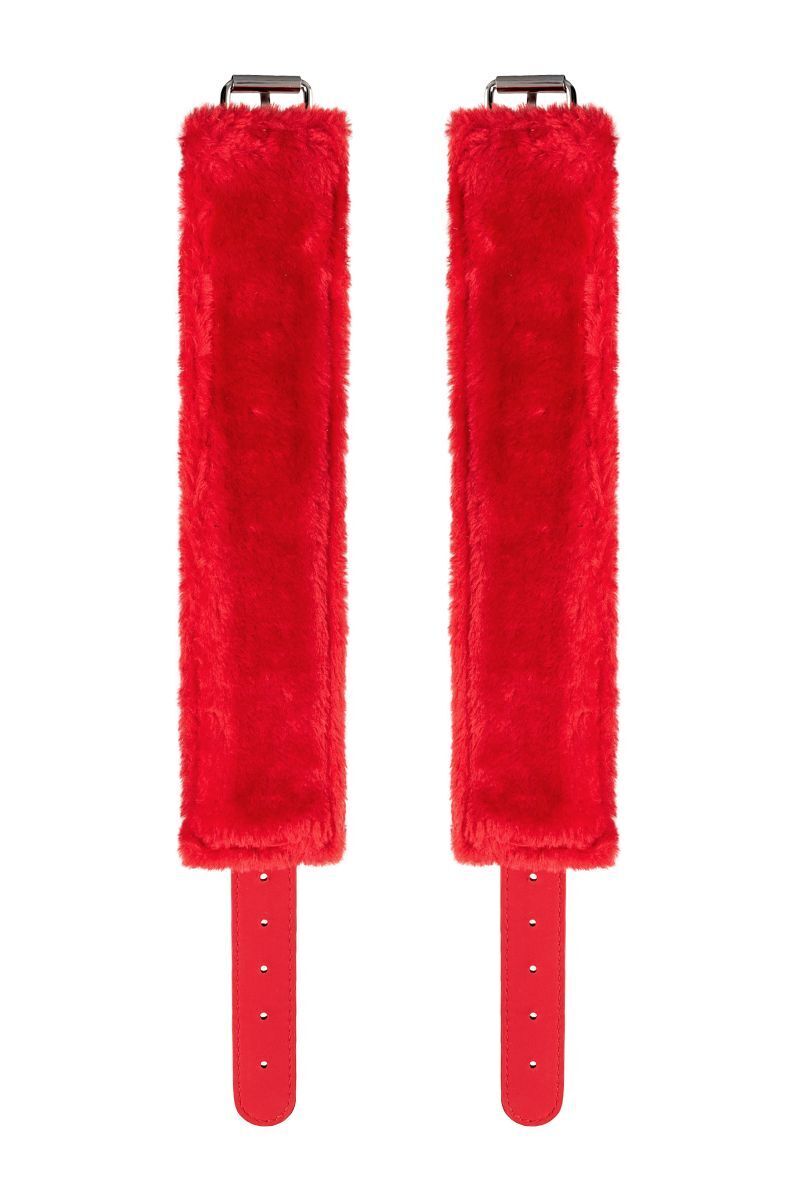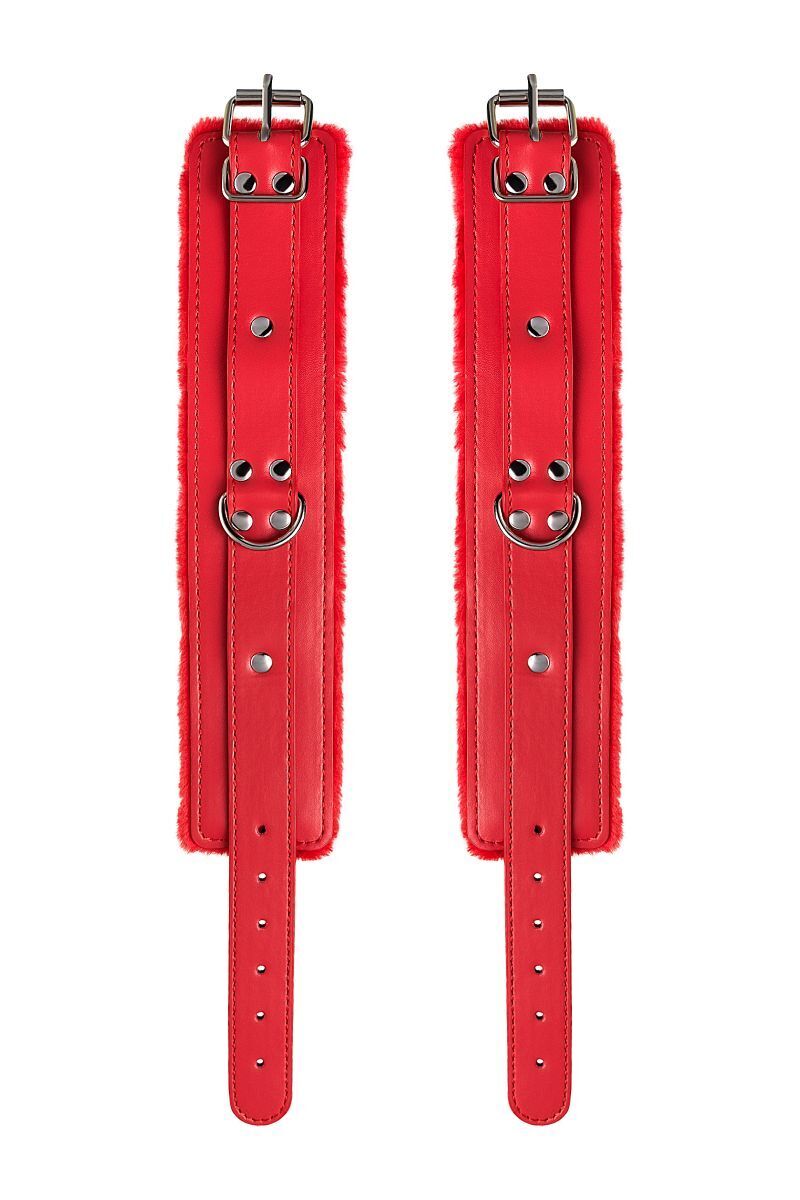 Изготовлены из прочной искусственной кожи, внутренний слой из мягкого ворса для комфорта. Цвет — насыщенный красный, что подчеркивает страсть и дерзость. Товар предназначен для взрослых, подходит как для начинающих, так и для опытных пользователей.