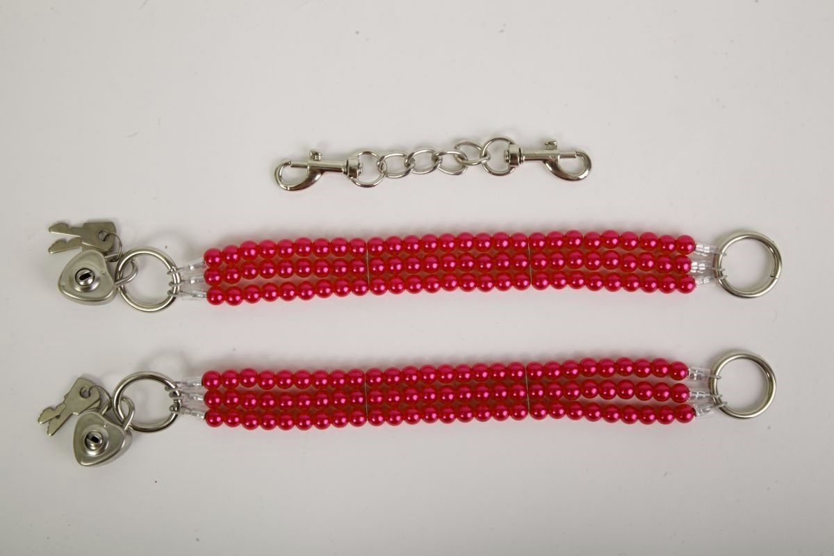 Эти красные оковы на ноги из бус подарят вам уникальные ощущения и добавят нотку романтики в ваши игры. Изготовленные из качественного пластика, они обеспечивают надежную фиксацию и комфорт при использовании. Замочки в виде сердца и четыре ключика добавляют элемент игривости и интриги, позволяя вам легко управлять процессом.