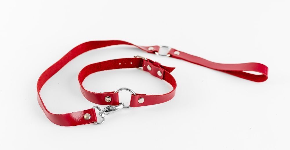 Чокер с поводком из натуральной кожи "Valentine's Day", красный, регулируемый 30-40 см, 60 см