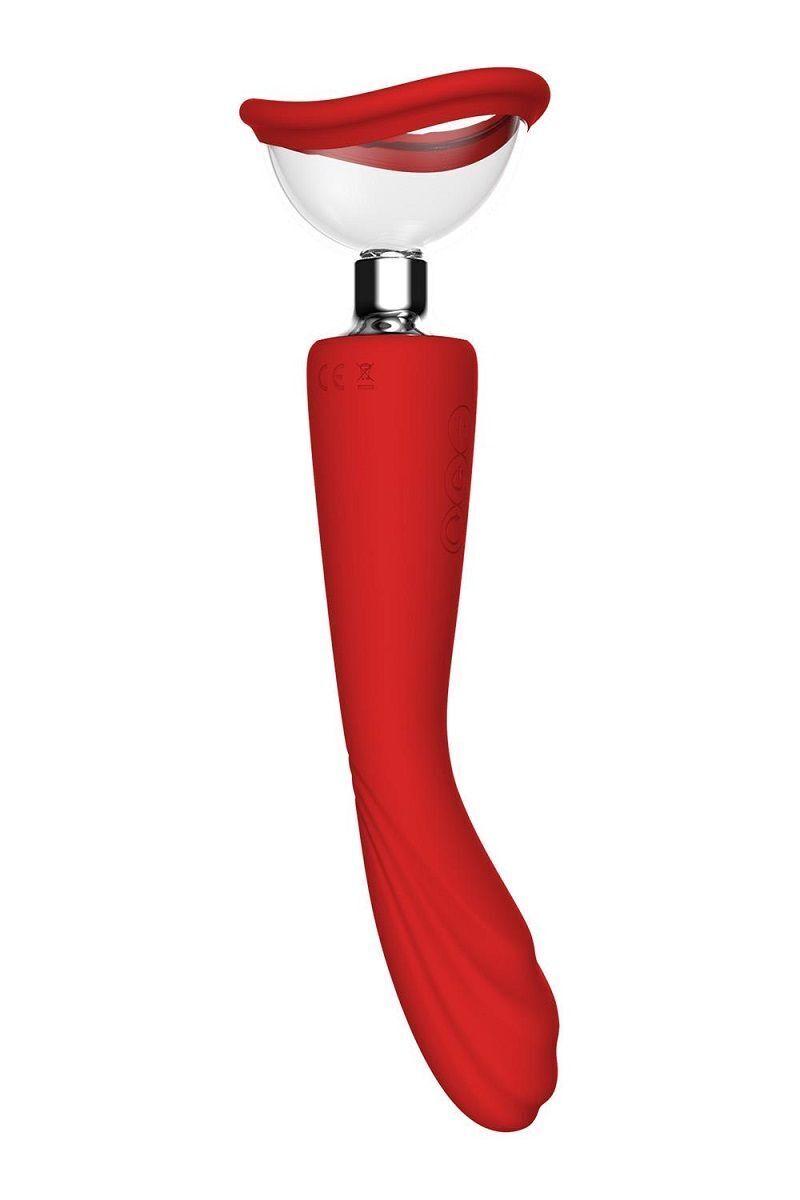 Стимулятор Georgia «Red Revolution»: вакуумная помпа и вибратор, 7 режимов, красный, силикон/пластик
