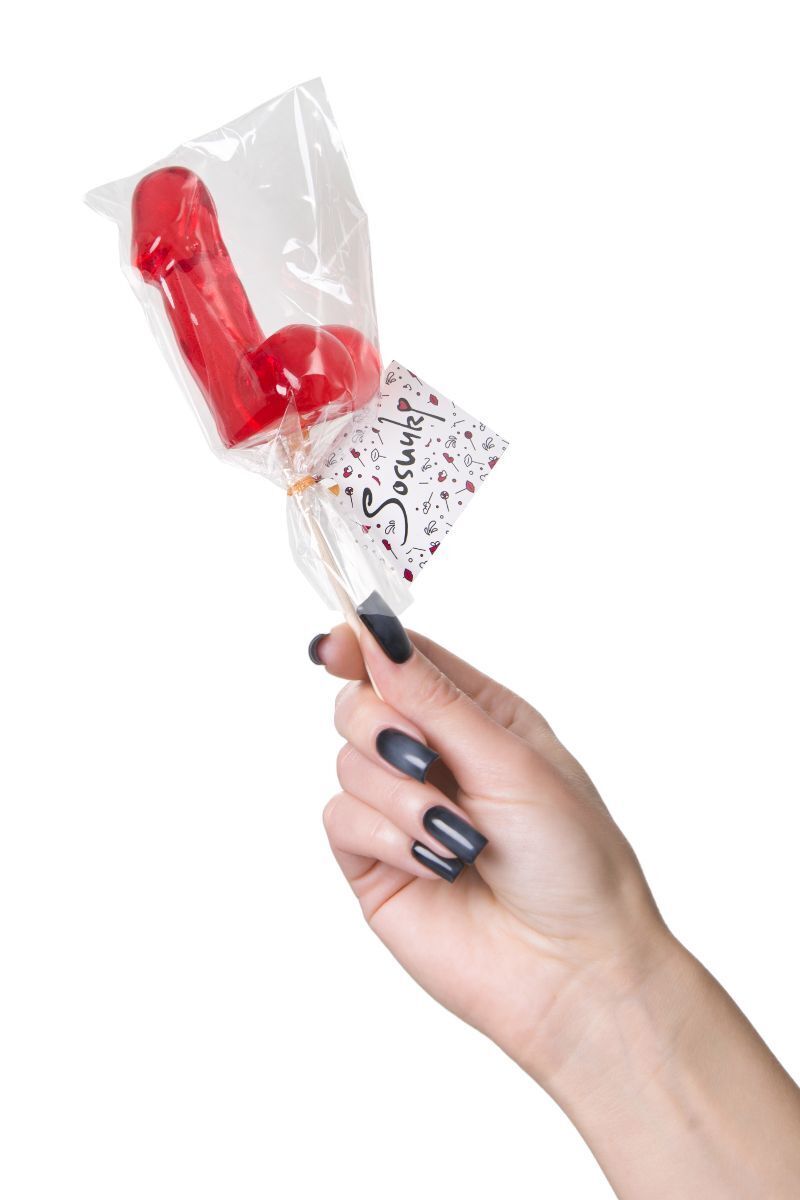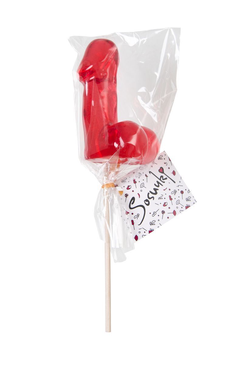 Леденец на палочке 'Sosuk', красный, 10.5см, форма фаллоса, вкус виски
