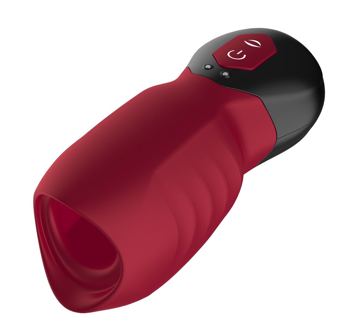 Корпус выполнен из анодированного пластика и силикона. Внутренняя часть мягкая и эластичная, что обеспечивает плотное и комфортное прилегание. Эргономичная форма с углублениями по бокам помогает надежно удерживать устройство в руке. Длина изделия составляет 12.5 см, диаметр — 6.2 см, цвет — красный.