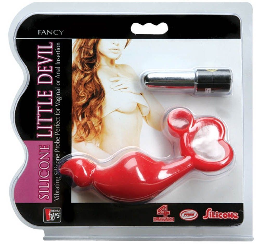 Анальный вибратор «Silicone Little Devil» с вибропультой, силикон, 10 см, 4 режима, красный