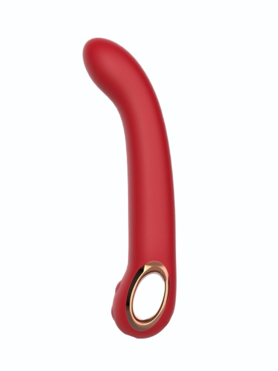 Длина — 22.1 см, диаметр — 3.9 см. Изготовлен из гипоаллергенного силикона с декоративным золотистым элементом. Работает на встроенном аккумуляторе, зарядка через USB. Цвет: красный.